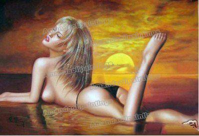 A Girl Lying At The Sea Sun Background Canvas Nude Oil Paintings |