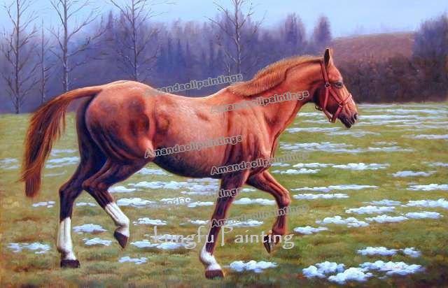 A Red Horse Winter Background Canvas Realist Oil Paintings |