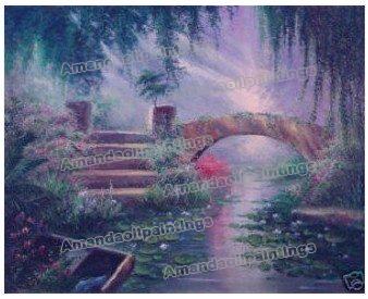 A River Subject Bridge Background Frameless Scenery Oil Paintings |