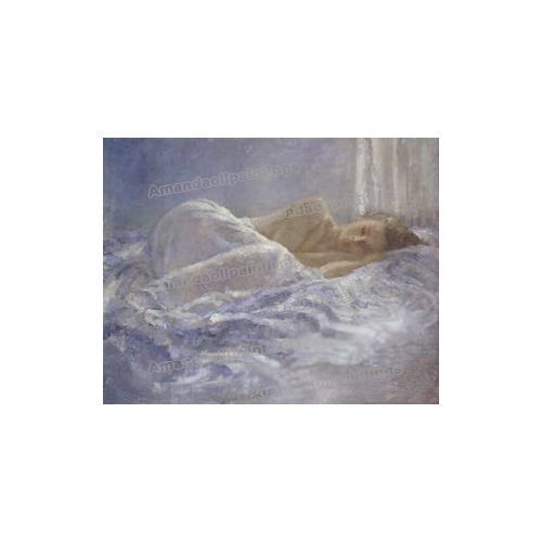 A Woman Sleeping On Bed Light Blue Background Board Impressionist Oil Paintings |