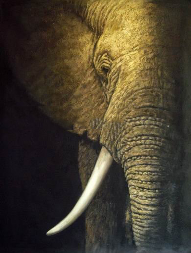 An Elephant With Big Ivory Canvas Animal Oil Paintings |