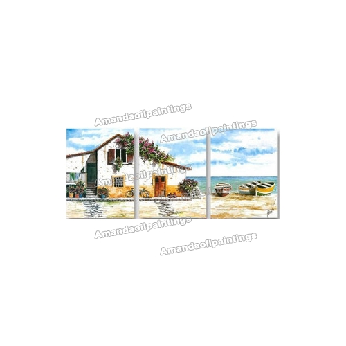Beach House Subject Canvas Calm Wave Seascape Oil Paintings |