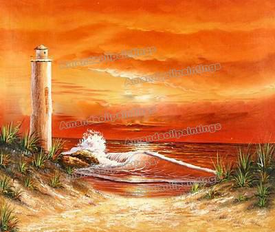 Beach Orange Background Canvas Seascape Oil Paintings |