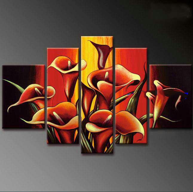 Black Red Yellow Background With Flowers On Canvas Modern Oil Paintings |