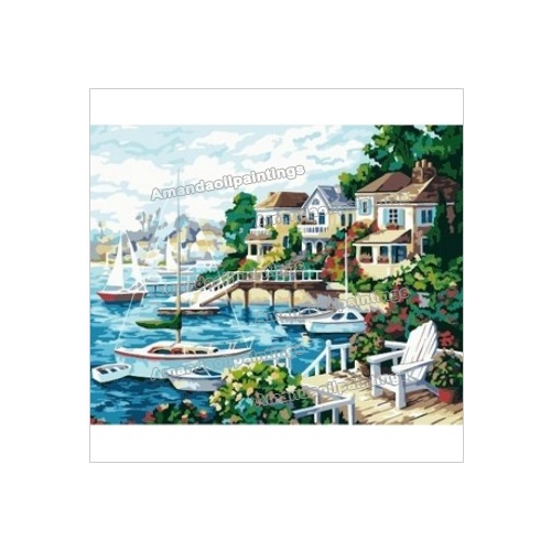 Blue Background Canvas Sailing Boat Modern Oil Paintings |