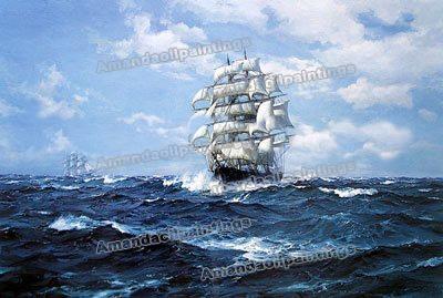 Blue Background With A Ship Canvas Seascape Oil Paintings |