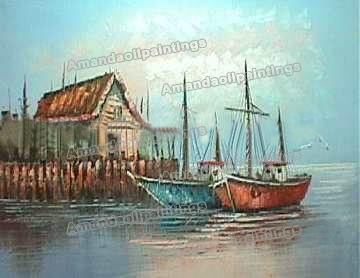 Blue Background With Many Boats Canvas Seascape Oil Paintings |