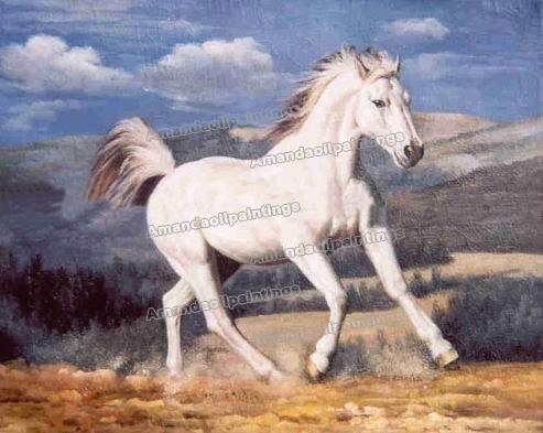 Blue Cloud Background Canvas A White Horse Animal Oil Paintings |