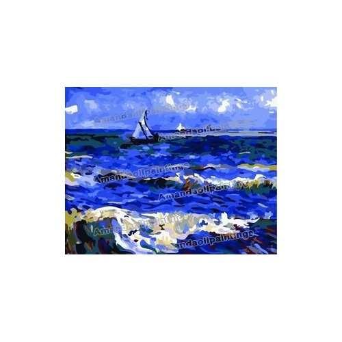 Blue Sea Subject Sailing Boat Background Pure Hand-painted Seascape Oil Paintings |