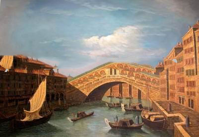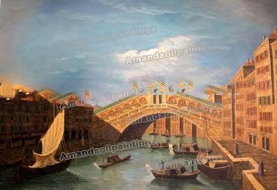 Brown Bridge With Many Boats Canvas Seascape Oil Paintings |