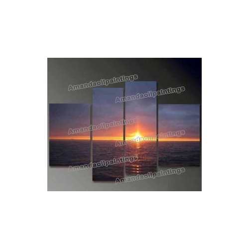 Calm Sea Subject Sunrise Background Vivid Colour Rectangular Shape Abstract Oil Paintings |