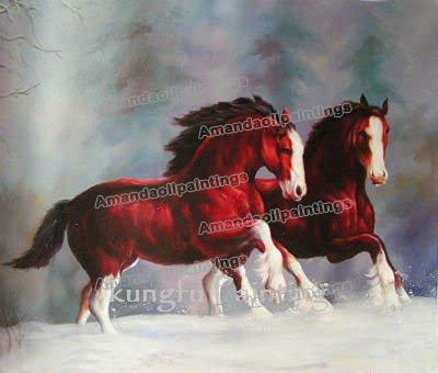 Canvas Square Shape Two Red Horses Animal Oil Paintings |