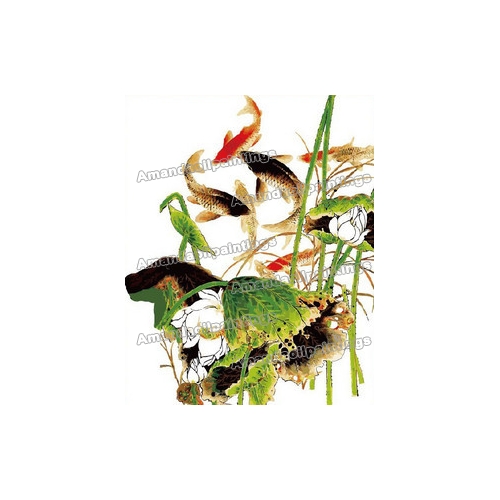 Carps Subject Lotus Leaf Background Pure Hand-painted Animal Oil Paintings |