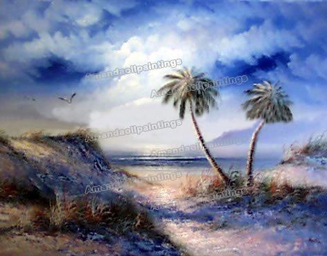 Coconut Tree Background Blue Sky Canvas Seascape Oil Paintings |