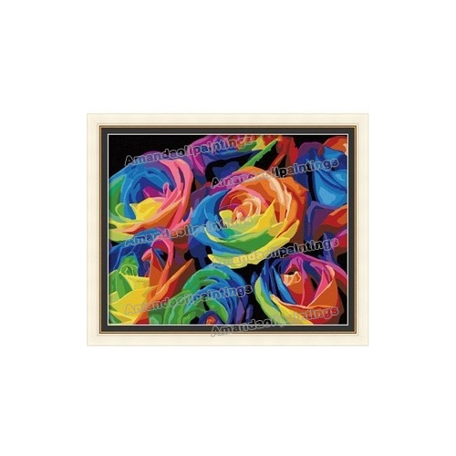 Colorful Rose Black Background Wall Decoration Flower Oil Paintings |