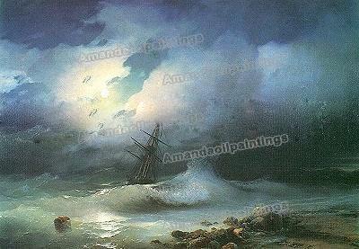 Dark Blue Background Handpainted Canvas Seascape Oil Paintings |
