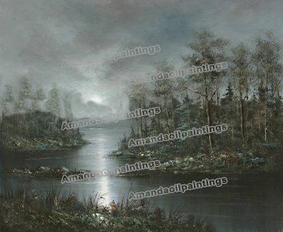Dawn Background With A Small River Canvas Realist Oil Paintings |