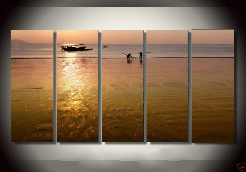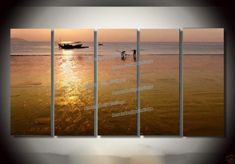 Dusk Background Sea & Fishmen Subject Canvas Modern Oil Paintings |
