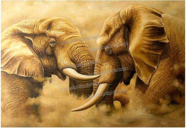 Elephant Subject Light Gold Background Wall Decoration Animal Oil Paintings |