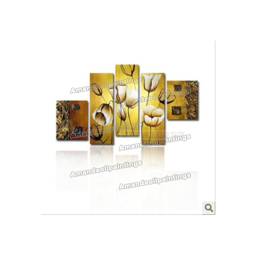 Five Pieces Gold Background Flowers Modern Oil Paintings |
