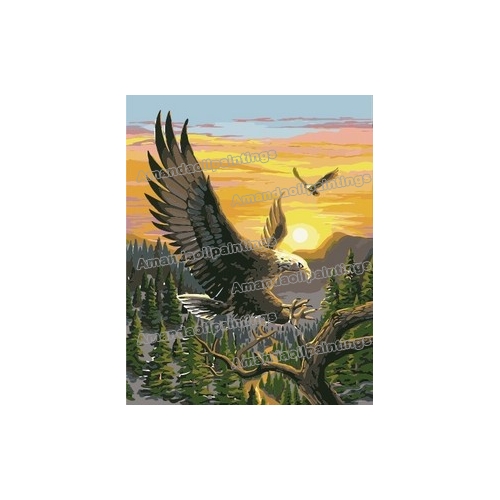 Flying Eagle Subject Sunrise Background Canvas Animal Oil Paintings |