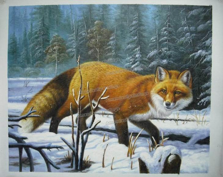 Fox Subject Snowfield Background Pure Hand-painted Animal Oil Paintings |