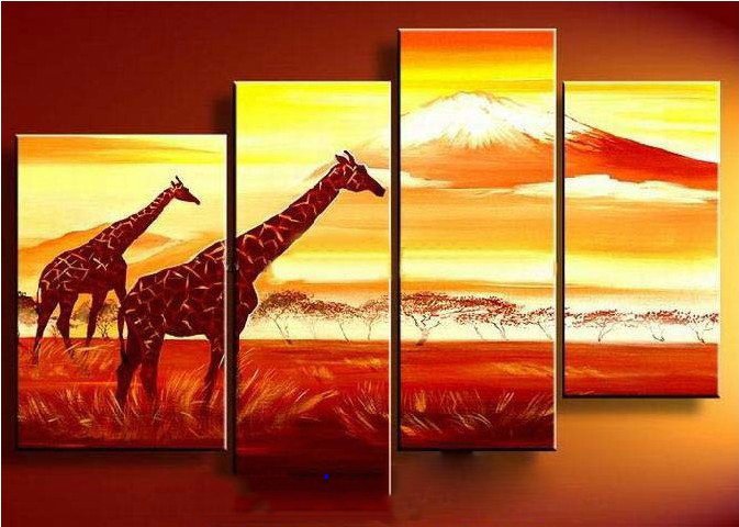 Giraffe Red Background Canvas Modern Oil Paintings |
