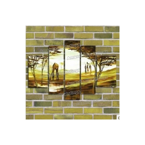 Green Background African Giraffe Five Pieces Modern Oil Paintings |