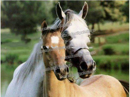 Green Background Two Horses Canvas Abstract Oil Paintings |