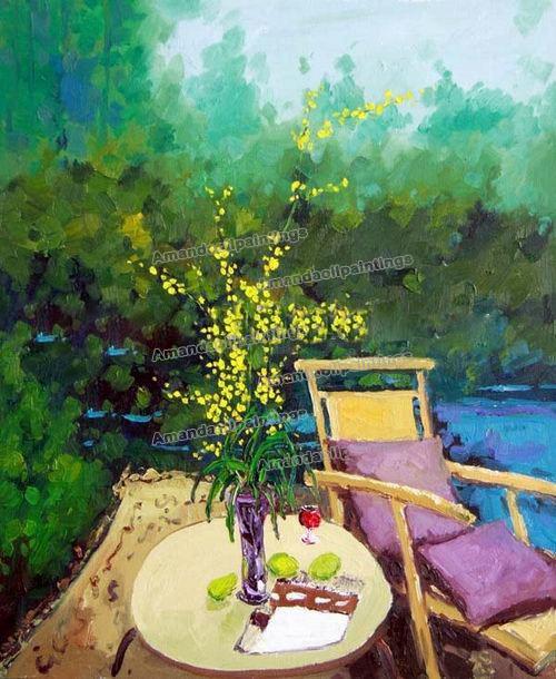 Green Background With A Chair Canvas Landscape Oil Paintings |