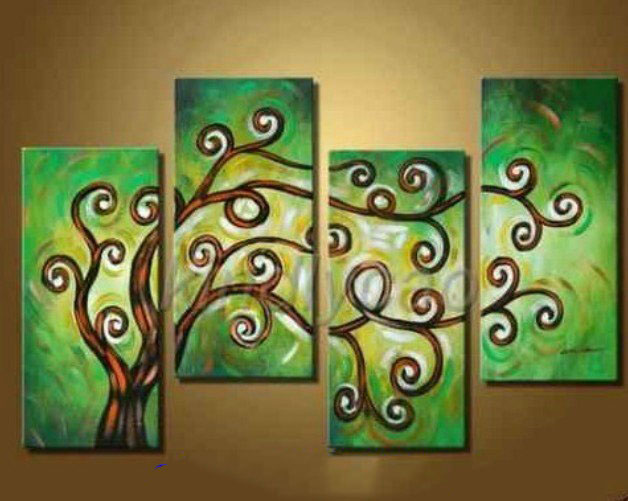 Green & Yellow Background With Tree Subject Abstractive Modern Oil Paintings |