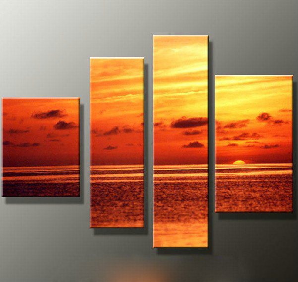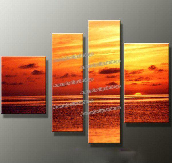 Hand Painted Dusk Seascape Subject Four Pieces Modern Oil Paintings |