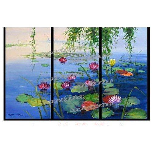 Hand-painted With Lake & Lotus Canvas Art Modern Oil Paintings |