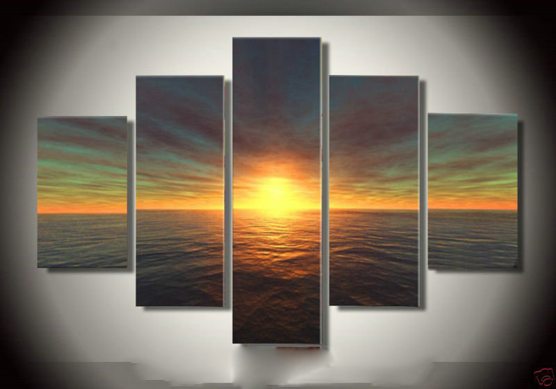 Hand-printed Sea & Sunrise Subject Rectangle Shape Modern Oil Paintings |