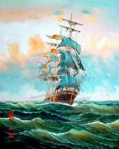 Latest Sailing Boat Oil Painting Seascape Wall Art Painting |
