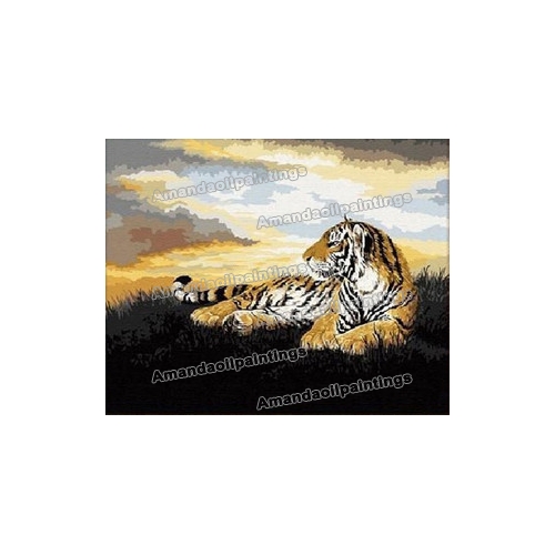 Light Gray Background Tiger Subject Frameless Animal Oil Paintings |