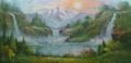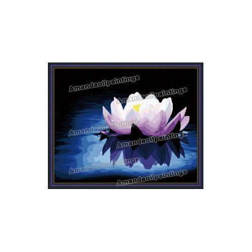 Lotus Subject Dark Blue Background Framed Flower Oil Paintings |