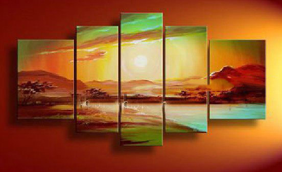 Mountain Range Background Vivid Colour Lake Subject Abstract Oil Paintings |
