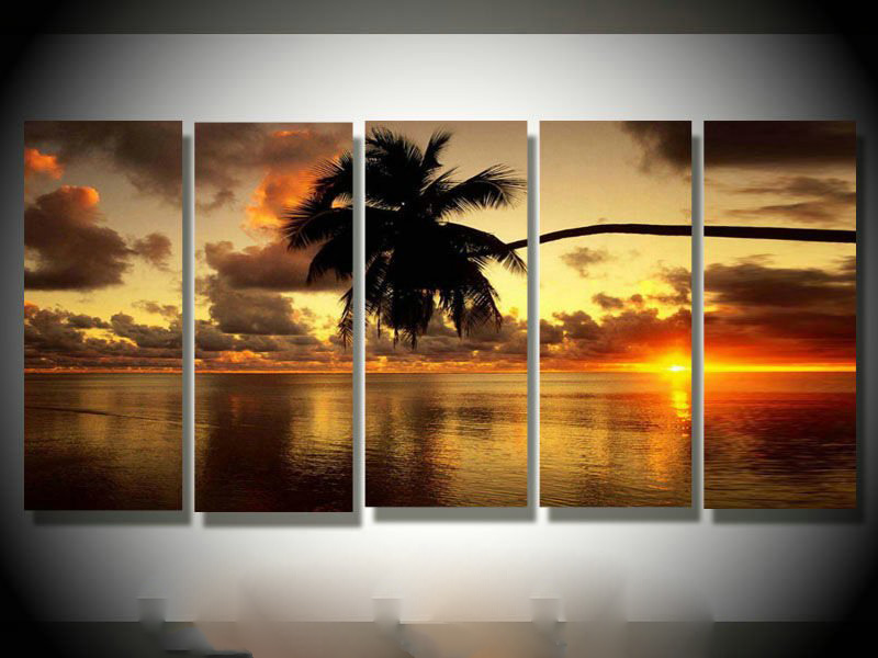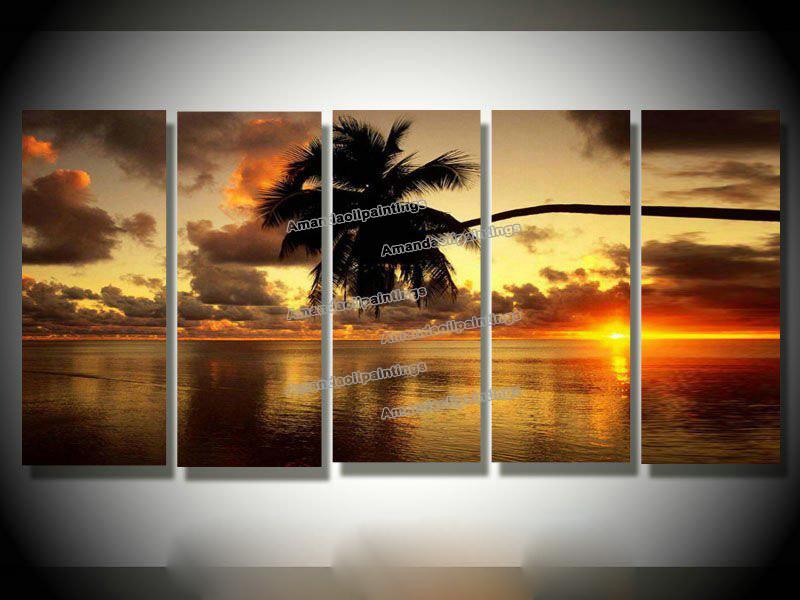 On Canvas R432 Hand Painted Abstract Seaside Sun Setting Modern Oil Paintings |