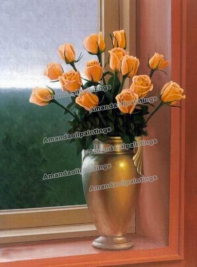 Orange Rose Window Background Canvas Traditional Oil Paintings |