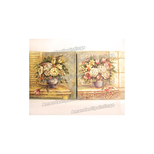 Pure Hand-painted Light Gold Background Canvas Flower Oil Paintings |