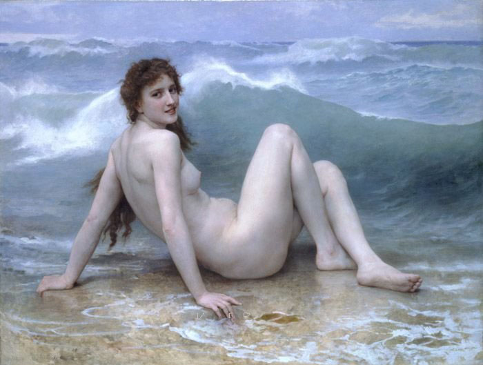 Pure Handmade Canvas Wave Background With A Nude Woman Classical Oil Paintings |