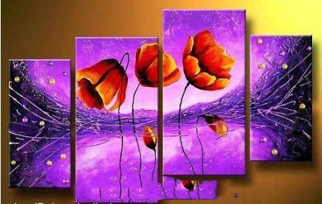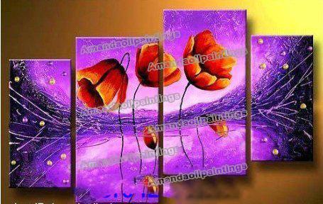 Purple Background Flowers Subject Canvas Modern Oil Paintings |