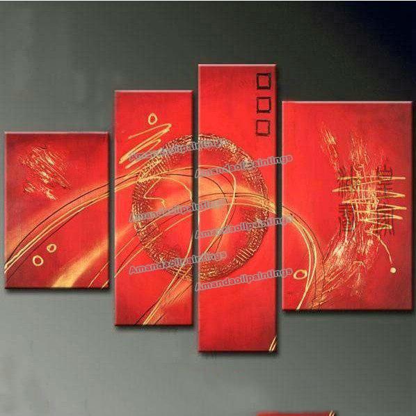 Red Background With Straps 4 Pieces Modern Oil Paintings |