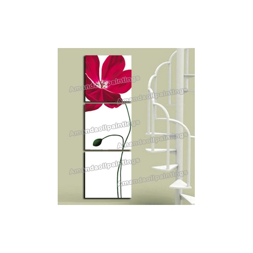 Red Flower Subject Triptych Wall Decoration Modern Oil Paintings |