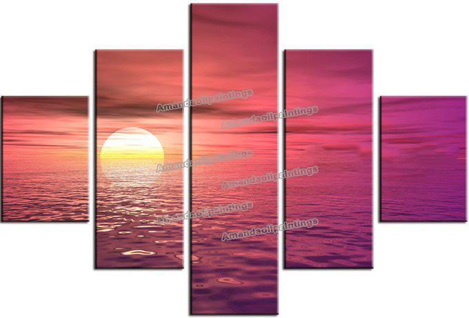 Red & Pink Sea & Sky Canvas Wall Decoration Modern Oil Paintings |