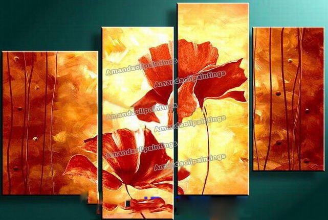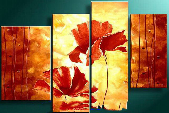 Red & Yellow Background Flower Subject On Canvas Modern Oil Paintings |