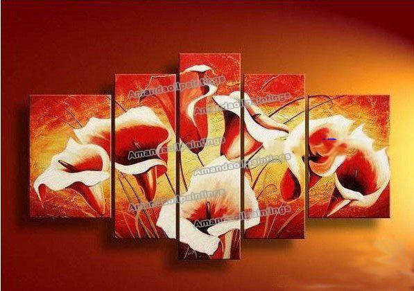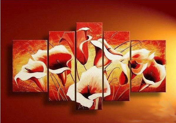Red & Yellow Background Flowers Subject Wall Decoration Modern Oil Paintings |