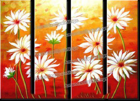 Red & Yellow Background Flowers Subjects Canvas Modern Oil Paintings |