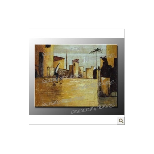 Riding Bike Man Subject Wide Street Background On Canvas Modern Oil Paintings |